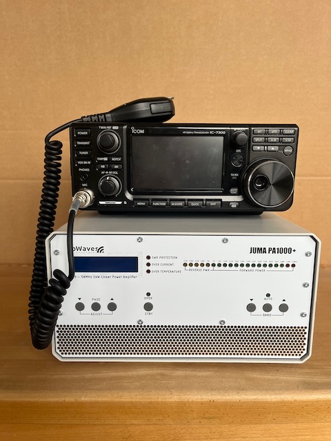 Als Funkgerät kam ein ICOM IC-7300 zum Einsatz. Unterstützt wurde dieser durch eine Endstufe Juma PA 1000, die eine maximale Ausgangsleistung von 1.000 Watt erzeugen kann. Diese wurde aber nicht ausgereizt, sondern es wurden immer nur gute 500 Watt an die Antenne geschickt.