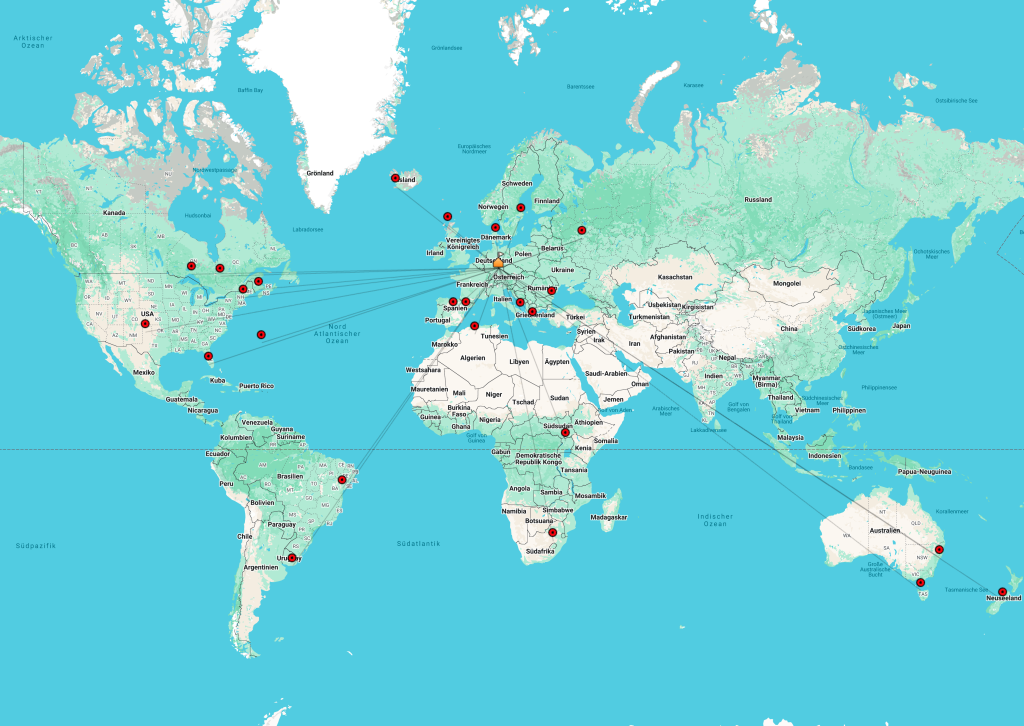 Insgesamt konnte ich 33 SSB QSOs auf 4 Kontinenten loggen. Die weiteste Verbindung war mit ZL3JAS in Neuseeland über 18.416 km.